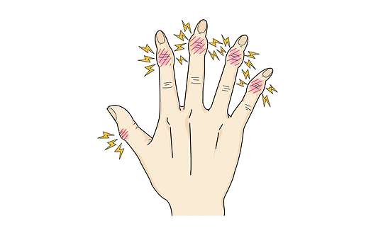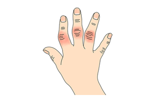 指の第2関節が腫れて痛み、指が曲げにくい。